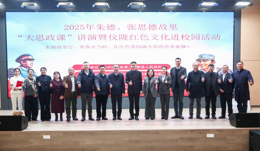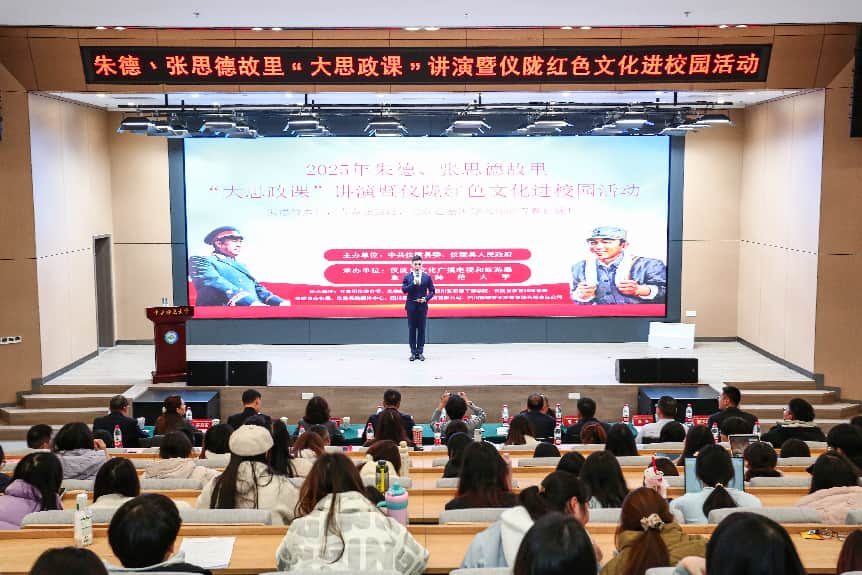 为充分挖掘和传播地方红色文化资源,发挥高校在人才集聚、文化传播及实践育人方面的独特优势,推动地方红色文化资源与高校教育教学、社会实践深度融合,更好发挥协同育人作用,12月26日下午,由中共仪陇县委、县政府主办,仪陇县文化广播电视和旅游局、重庆师范大学承办的朱德、张思德故里“大思政课”讲演暨仪陇红色文化进校园活动在重庆师范大学国家应用数学中心106会议厅举行。