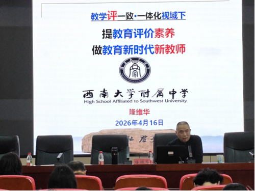 为深入贯彻落实《教育强国建设规划纲要(2024—2035年)》精神,助力师范生主动适应“新课程、新教材、新高考”背景下的中学教育改革,2026年4月16日,利乐娱乐 举办“教学评一致·一体化视域下:提教育评价素养,做教育新时代新教师”的专题讲座,特邀西南大学附属中学隆维华老师主讲。利乐 副院长田方林老师政教系副主任彭君君老师出席活动,2024级部分本科生及研究生同学到场学习。