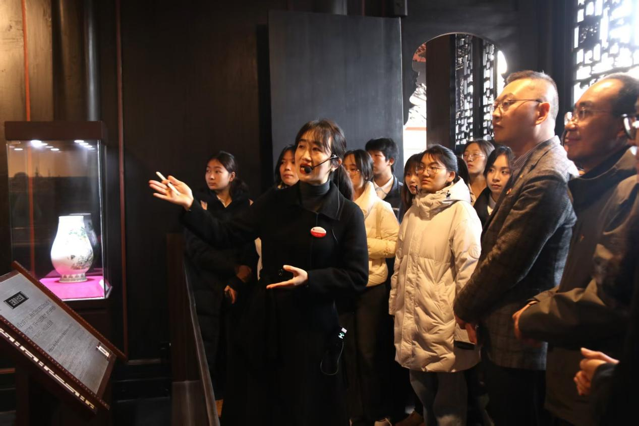 研学团成员首先抵达杨尚昆故居,在讲解员介绍下,同学们了解到故居又名“四知堂”,取“天知、地知、你知、我知”之意,是杨家“正直清廉”家风与官德的生动写照。同时,同学们细致观察了故居的建筑格局,深入了解了其家族的历史脉络。跟随讲解员生动的叙述,杨尚昆同志波澜壮阔的一生在同学们眼前徐徐展开,让大家近距离深切感悟革命先烈的赤诚初心与豪迈胸襟。这场沉浸式学习体验让马院学子深刻体会到前辈们开创革命事业的艰辛,更进一步坚定了他们传承红色基因、矢志报效祖国的理想信念。